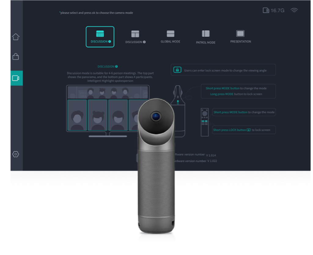 Integrating panoramic cameras, omni-directional microphones, Hi-Fi speakers, and a video conferencing host into one device,and equipped with audio-video intelligent AI algorithms,Kandao Meeting is a more powerful 360° intelligent video conferencing equipment.
